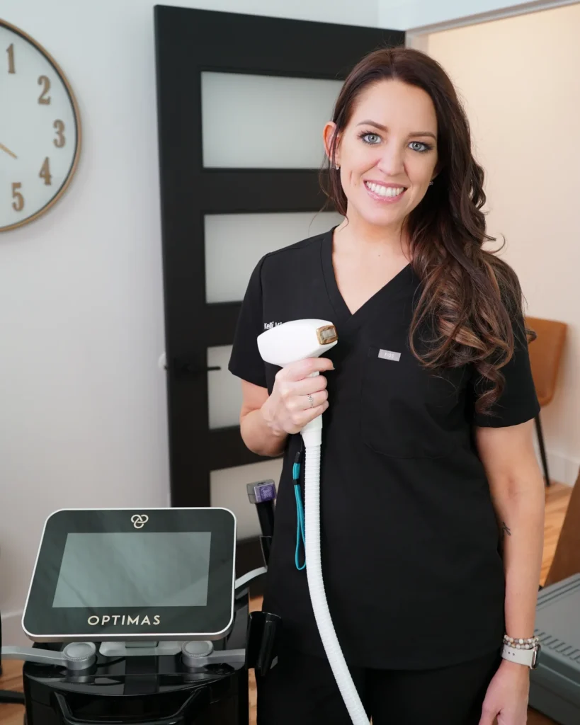 A handheld device delivers precise laser energy to the treatment area while the cooling tip protects your skin. Most sessions take 10–60 minutes, depending on the size of the area. Clients often describe the sensation as a light snap or gentle heat.